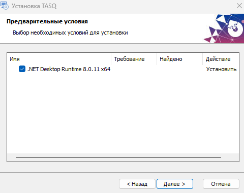 Во время установки используется лицензия Pilot, необходимая для обновления данных модуля Tasq. В дальнейшем эта лицензия будет использоваться для работы службы Tasq Service, которая обеспечивает автоматизированную выдачу заданий.