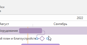 - Наведите курсор на саму задачу в диаграмме Ганта и потянув за точку окончания/начала работ, соедините ее с любой другой задачей или вехой;