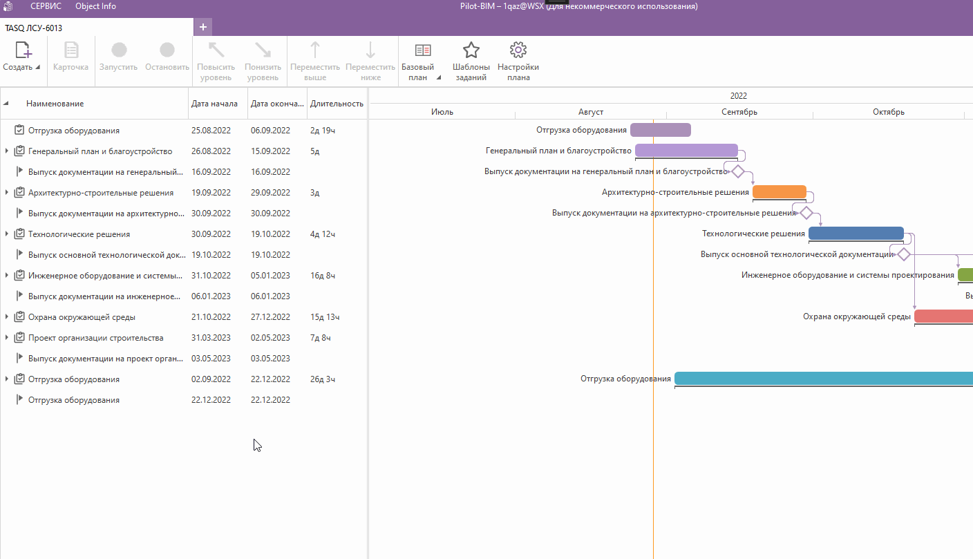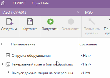 - В новой вкладке Pilot откройте окно проектов TASQ и выберите команду главного меню Создать → План;